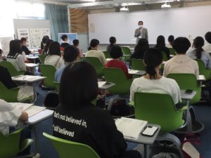 介護福祉士に興味のある学生と、教職に興味のある学生に分かれて、詳しい説明を聞きました。