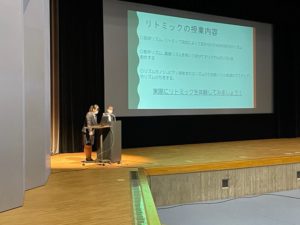 高大連携 学生による幼児教育学科説明♬幼児教育学科 R3年度 No. 26♬ 2021.12.23学内ブログ幼児教育学科幼児教育コースチャイルド・ミュージックコース みなさんこんにちは。 附属高校の2年生に向けて、幼児教育学科幼児教育コースとチャイルド・ミュージックコースの学生が、それぞれ学科コース説明を行いましたので、ご紹介します。 幼児教育学科では、どんな学びを深めていくのか、実習や取得できる資格・免許について説明を行いました。 お話だけではなく、手遊びやリトミックなど一緒に体を動かす、 楽しい実践の時間もありました♪
