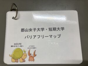 授業で製作した学園内のバリアフリーマップを修正・加工して、普段使いやすいようにしてみました。持ち運びやすいサイズと大きめで見やすいサイズの2種類あります!他の先生方からも可愛いと好評です\(^^)/