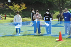 地域創成学科の学生は、小中学生対象腕輪投げ選手権のアシスタントスタッフとして受付や表彰式に携わり、大会運営のサポートを行いました。