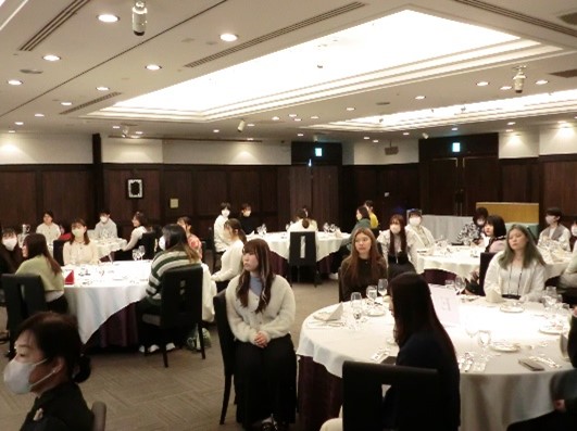 最後の研修は、郡山ビューホテルでのテーブルマナー研修です。マナー講座では、食事会に参加するときの服装やナプキンの使い方、食事を摂る早さ、グラスとナイフ、フォークの配置の意味と使い方、そして、白ワインと赤ワインのつくり方から飲み方まで学びました。