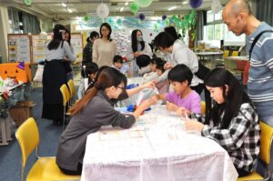 大学院・大学・短大では各学科の研究、特色を印象づける展示や発表、ワークショップ、飲食物やオリジナルグッズの販売などを繰り広げ、子どもから大人の方まで楽しく過ごしてもらいました。
