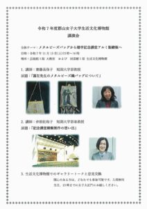 郡山女子大学生活文化博物館の令和7年度講演会は11月15日㈯午後1時から芸術館1階の大教室で開かれます。