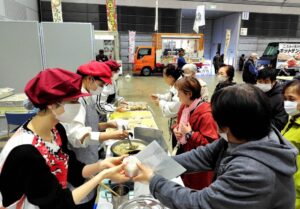 「ふたば・こおりやま ふれあい祭り」が11月29日、郡山市のビッグパレットふくしまで開かれました。東日本大震災と原発事故により避難して郡山市や周辺で暮らす双葉郡の方々との交流の場として催され、郡山女子大学と短期大学部の学生、教員もブースを出展しました。