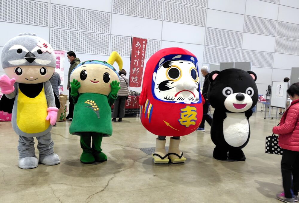 会場には郡山市のマスコット「がくとくん」、富岡町の「とみっぴー」、大熊町の「まあちゃん」、双葉町の「双葉ダルマさん」が登場し人気を集めていました。