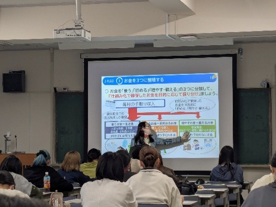 キャリアデザインⅠ -お金から考えるライフプランニング- 2025.12.25ニュースキャリア教育 金融経済講座を実施しました。 講師は金融経済教育推進機構J-FLEC認定アドバイザーの宍戸美香様と 東邦銀行総合企画部広報・社会貢献課の生田目朝美様です。 自分でお金について考えられるよう 講義でしっかり学びました。 お金の扱い方や運用などについて 学びました。 自分の将来的なことも考えながら 講義に耳を傾けていました。 教養・キャリア教育委員会