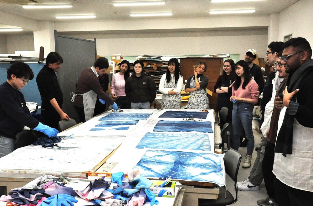 福島県内で復興の取り組みや災害時の医療などについて学んでいる米ハーバード大T.H.Chan公衆衛生大学院の院生らが1月11日、本学を訪れ、藍染め体験や調理実習を行い、日本の文化の理解に努めました。