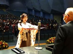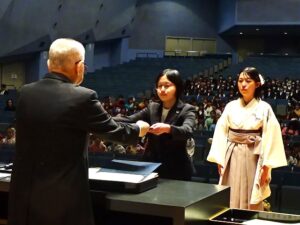 関口学長は告辞で「それぞれが学んだ成果、身につけた教養を社会のために役立ててください」と述べ、来賓が祝辞を、在学生代表が送辞を贈りました。