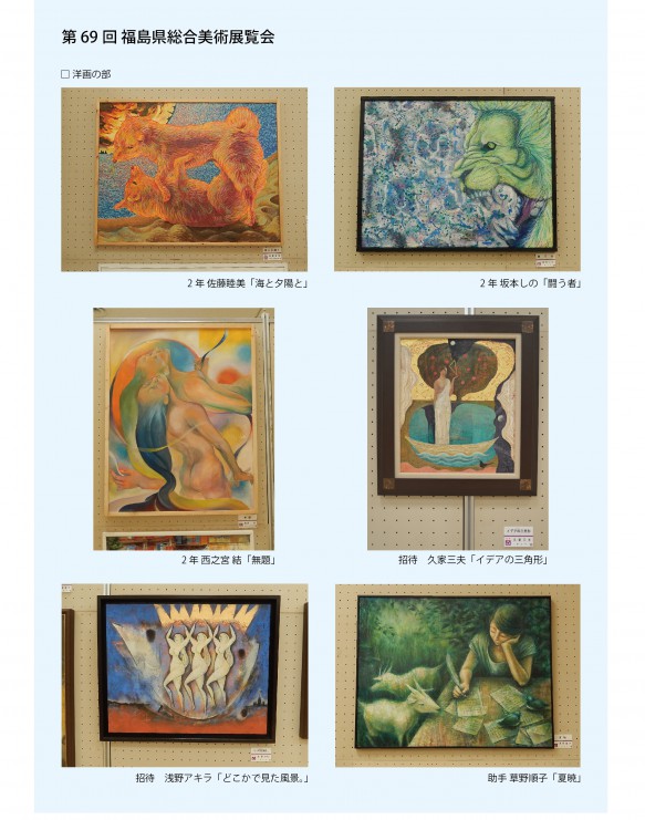 ・洋画の部 入選 2年生 坂本しの・佐藤睦美・西之宮 結 助手 草野順子 / 招待 久家三夫・浅野アキラ